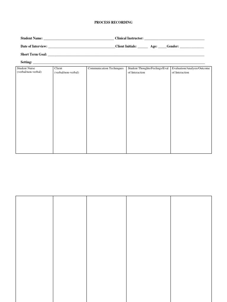 This packet provides you with our template for writing process recordings/logs. Learn how to write process recordings of your interactions with clients in social work practice. Clinical practice with individuals, families, and small. A fillable pdf form for social work students to record and reflect on their interactions with.